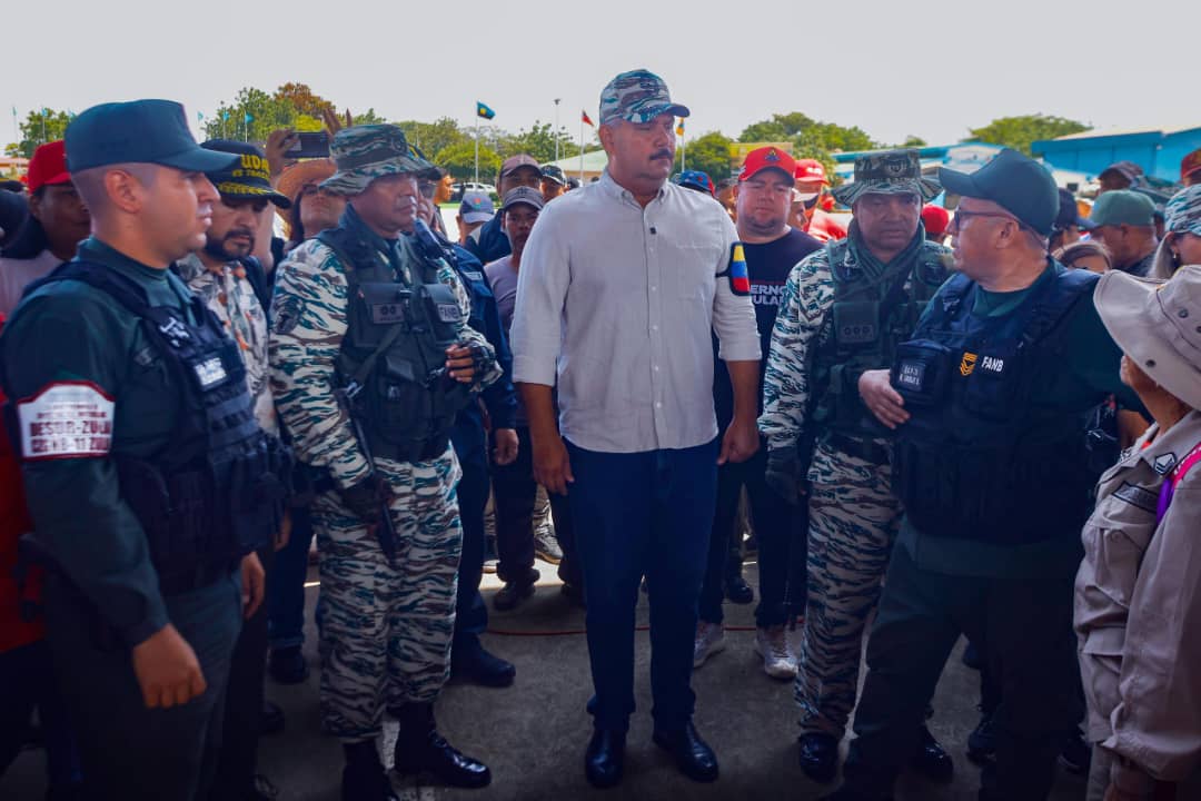 El gobernador, acompañado de los comandantes de la Redi Occidental y la Zodi Zulia, MG Pedro González y GD Javier Magallanes, respectivamente, dijo que el pueblo venezolano tiene dos semanas en alistamiento permanente y que ahora es la cohesión “en combate, adiestramiento avanzado, donde el pueblo cubre los cuarteles con la bandera nacional, con el brazalete 4F que hoy simboliza Venezuela libre, independiente, soberana, pero sobre todo unida”.