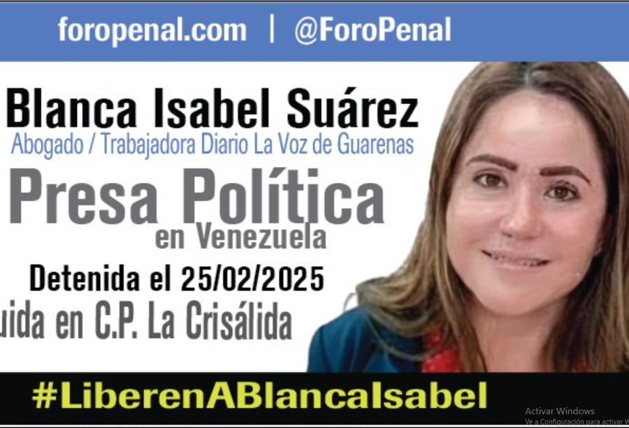 Suárez Camacho, de 43 años y madre de dos hijos menores de edad, fue detenida el 25 de febrero de 2025 por funcionarios del Servicio Bolivariano de Inteligencia Nacional (Sebin). De acuerdo con el documento presentado, su aprehensión está vinculada exclusivamente a su rol como apoderada judicial del Diario La Voz en un recurso contencioso tributario.
