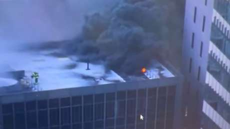Cámaras de seguridad grabaron el momento en el que una enorme columna de humo negro se eleva tras un gran incendio en el techo de un rascacielos en el centro de Manhattan, Nueva York. Las autoridades señalaron que el siniestro parece haberse originado en un sistema de climatización en la azotea del edificio, mientras las causas siguen bajo investigación.