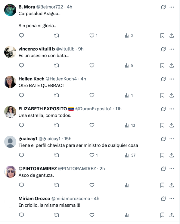 Usuarios en X criticaron la designación de Alvarado y afirmaron que es “más de lo mismo” y que al igual que en su primera gestión pasará “sin pena ni gloria”.