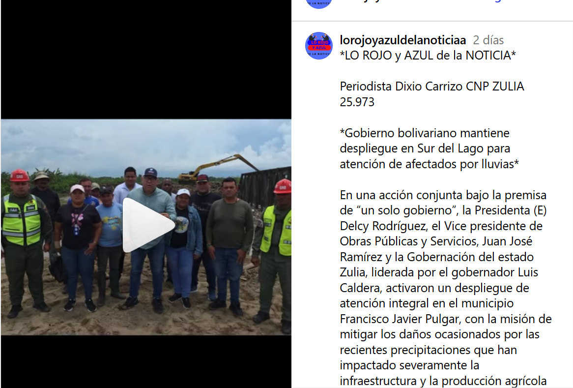 Con la premisa firme de «un solo gobierno», la presidenta encargada Delcy Rodríguez 🏛️, el vicepresidente de Obras Públicas y Servicios Juan José Ramírez 🔧 y nuestro gobernador zuliano Luis Caldera 🏢 activaron un despliegue de atención integral en el municipio Francisco Javier Pulgar, que quedó literalmente como poceta ‘e barro tras las lluvias que no dieron tregua. ¡Las precipitaciones cayeron con todo y dejaron su rastro de daños en la infraestructura y en la producción agrícola de la zona! 🌽💧