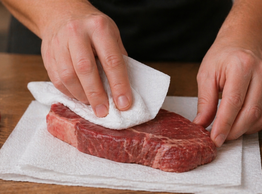 La famosa reacción de Maillard solo comienza de manera efectiva cuando la superficie de la proteína alcanza temperaturas entre los 148 °C y los 165 °C. El portal gastronómico Epicurious señala que, incluso unas pocas gotas de agua, pueden retrasar este momento crítico. Al secar el corte, se asegura que la transferencia de calor sea inmediata y uniforme.